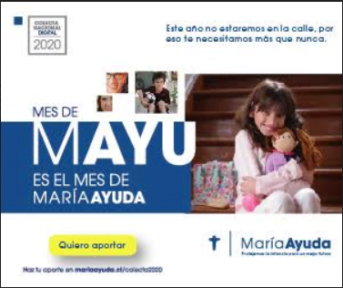 - La campaña se realizará durante todo el mes de mayo, la cual lleva el nombre “mes de Mayu, el mes de María Ayuda” y la manera de aportar es a través de www.mariaayuda.cl/colecta2020/