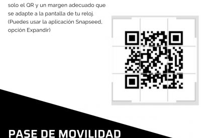 1. Edita tu pase de movilidad dejando solo el QR y un margen adecuado que se adapte a la pantalla de tu reloj.
