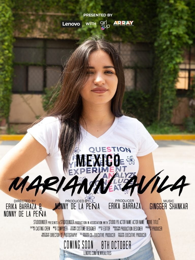 Cuando se lanzó nuestra serie de películas, la cineasta americana Ava DuVernay, comentó: “Estoy entusiasmada de unirme a Lenovo para destacar el sólido trabajo de diez talentosas jóvenes mujeres de todo el mundo que han utilizado la tecnología para dar vida a sus misiones de maneras extraordinarias. Mis colegas de ARRAY y yo hemos creado esta tutoría como parte de un esfuerzo esencial para empoderar a la próxima generación de líderes mujeres. Aplaudo a cada una de estas jóvenes mujeres por compartir sus historias con el mundo a través del programa Nuevas Realidades de Lenovo. En un punto crucial de nuestra historia mundial, es fundamental que nos tomemos de la mano y marchemos hacia una sociedad más inclusiva donde todos sean valorados y abrazados”.
