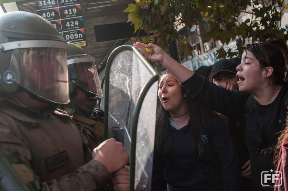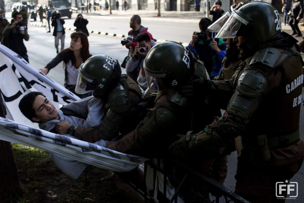 Más de 200 estudiantes secundari@s acudieron a la marcha convocada por el Mecem Chile para protestar contra la segregación, el mercado y la competencia en la Educación, y la respuesta del Estado fue inmediata: represión por parte de FFEE dejando un saldo de 22 personas detenidas, entre ell@s una menor desmayada y otra golpeada en la vagina.