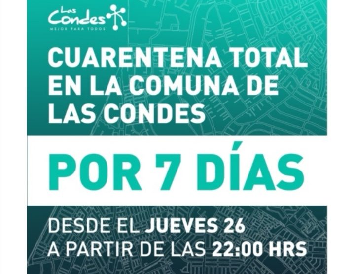 Este miércoles se ampliaron las medidas para enfrentar el coronavirus en la Región Metropolitana, declarando una “cuarentena total” en Las Condes, Lo Barnechea, Vitacura, Providencia, Ñuñoa, Santiago e Independencia.