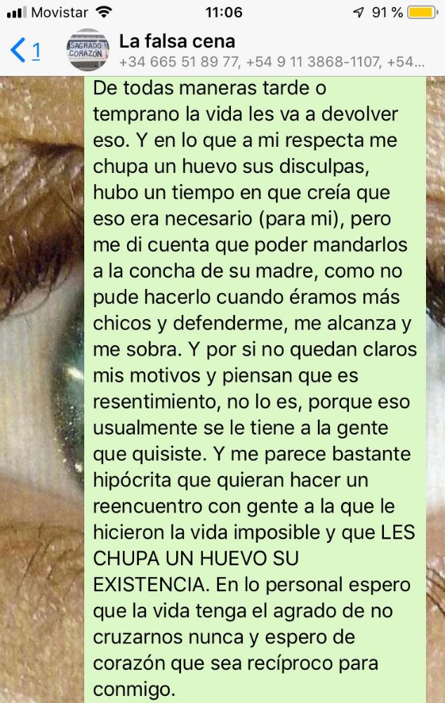Me agregaron a un grupo de ex compañeros del colegio porque querían hacer un reencuentro. 6 años esperé este momento para poder decirles las cosas. Lástima que no podría juntarme en un lugar con estos seres para decírselos a la cara https://t.co/Uv15l1aKSX