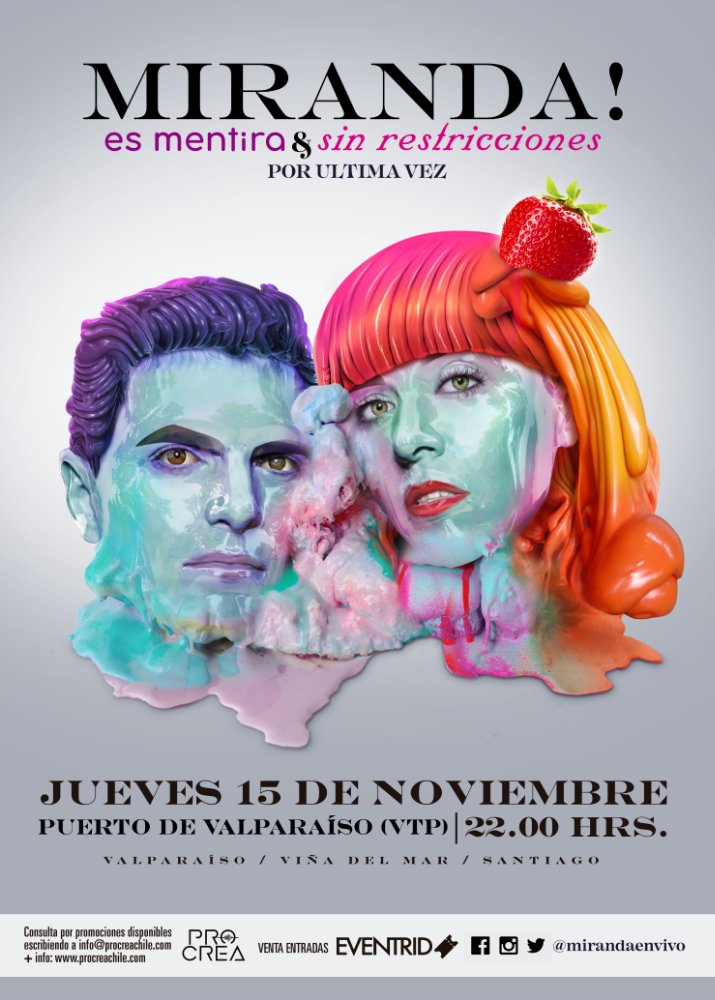Miranda se presentará en vivo el próximo jueves 15 de noviembre en el Puerto de Valparaíso. Por última vez revivimos “Es Mentira” y “Sin Restricciones”.