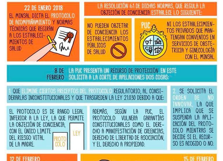 [ACTUALIZACIÓN] Creemos necesario aclarar que la UC plantea la disyuntiva entre verse imposibilitada de objetar conciencia institucionalmente o poner termino al convenio que posee con los centros de salud familiar, como un argumento para que se reconsidere la petición de no innovar. (En caso de dudas, dejamos link del recurso presentado en los comentarios) En esta misma línea, las autoridades de la UC nos han expresado su interés en proteger el convenio.Por otro lado, el protocolo es de carácter reglamentario, por lo tanto no tiene rango legal. Sin embargo, la UC presentó como argumento su ilegalidad porque estaría abarcando limitaciones más allá de las presentadas en la ley.