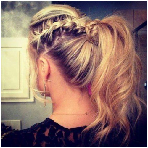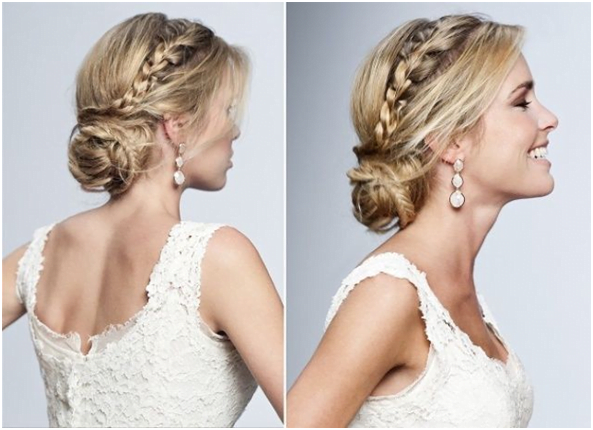 Moño con trenzas desordenado: Se hace una partición de cien a cien para poder hacer un pequeño hopo en la parte superior, luego se trenza entre la cien y la oreja un lado hasta los medios y el otro completo. Luego te realizas el moño y enrollas la trenza para que no se vea el elástico que lo sujeta y lo afirmas con horquillas.
