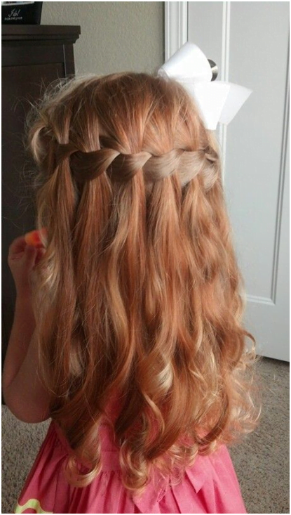 Trenza cascada: Separa la primera sección de cabello en tres partes iguales, comienza a trenzar, una vez completa una secuencia de la trenza, deja una sección suelta y empieza a incorporar una sección de más cabello a la trenza, y así sucesivamente.